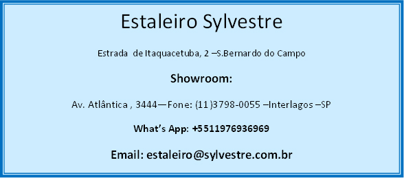 Showroom: Av. Atlântica , 3444-Fone: (11)3798-0055 ou 5660-6999 -Interlagos -SP - Email: estaleiro@sylvestre.com.br